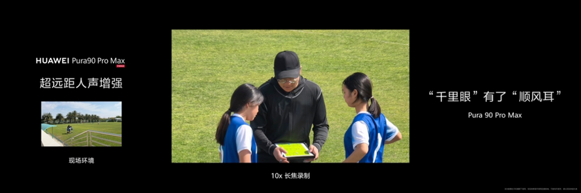 有了光学品质的超长焦能力,在录制视频时收声同样重要,毕竟声音混乱嘈杂的视频将失去临场感。华为Pura 90系列此次还首发了远距人声增强技术,有效提升了在使用长焦镜头远距离拍摄时的目标人声清晰度,无论是演唱会上爱豆的歌声,还是赛场上球员的呐喊,都能清晰收录,让视频更有临场感。这项技术与2亿长焦视频能力完美配合,让华为Pura 90系列不仅能“拍得远“,还能“听得清”。