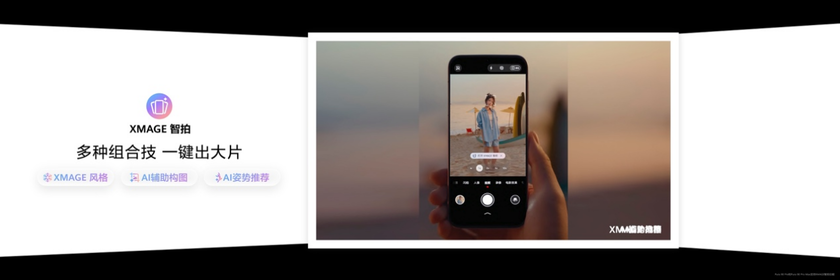 拍摄前,它会通过AI识别场景和主体,为你推荐最佳构图和拍摄姿势,解决“不会摆、不会站“的难题;拍摄中,它会实时匹配最优的拍摄参数、最佳构图选择以及XMAGE风格,按下快门就是一张好照片;拍摄后,它能预判你的修图意图,一键完成人像精修、风景调色、消除反光等复杂操作。